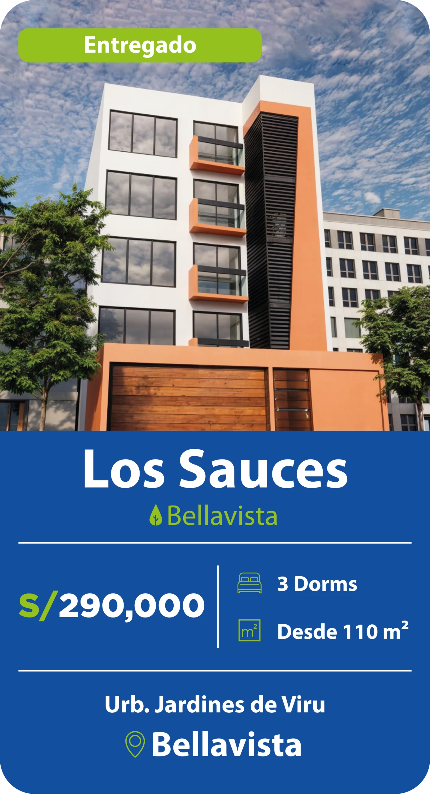 ¡Disponibilidad Inmediata! Nuestro edificio Los Sauces es un desarrollo ubicado en una posición privilegiada en una de las zonas más destacadas de Bellavista. Ofrecemos departamentos de 2 y 3 dormitorios, con acabados de alta calidad y una distribución funcional. Solicita una cotización, más detalles o descarga toda la información sobre nuestro innovador proyecto Los Sauces.